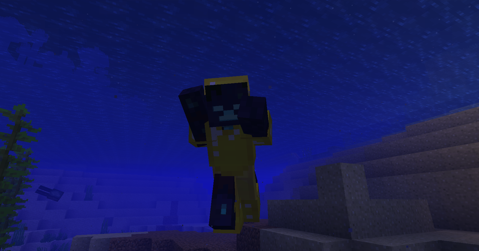 Zombies that are wearing armor when they drown turn into drowned with the armor on. When the drowned swim around, the armor doesn't move with the drowned, such as the legs going through the leggings of the armor. The drowned also appears to be dark purple instead of blue-green.