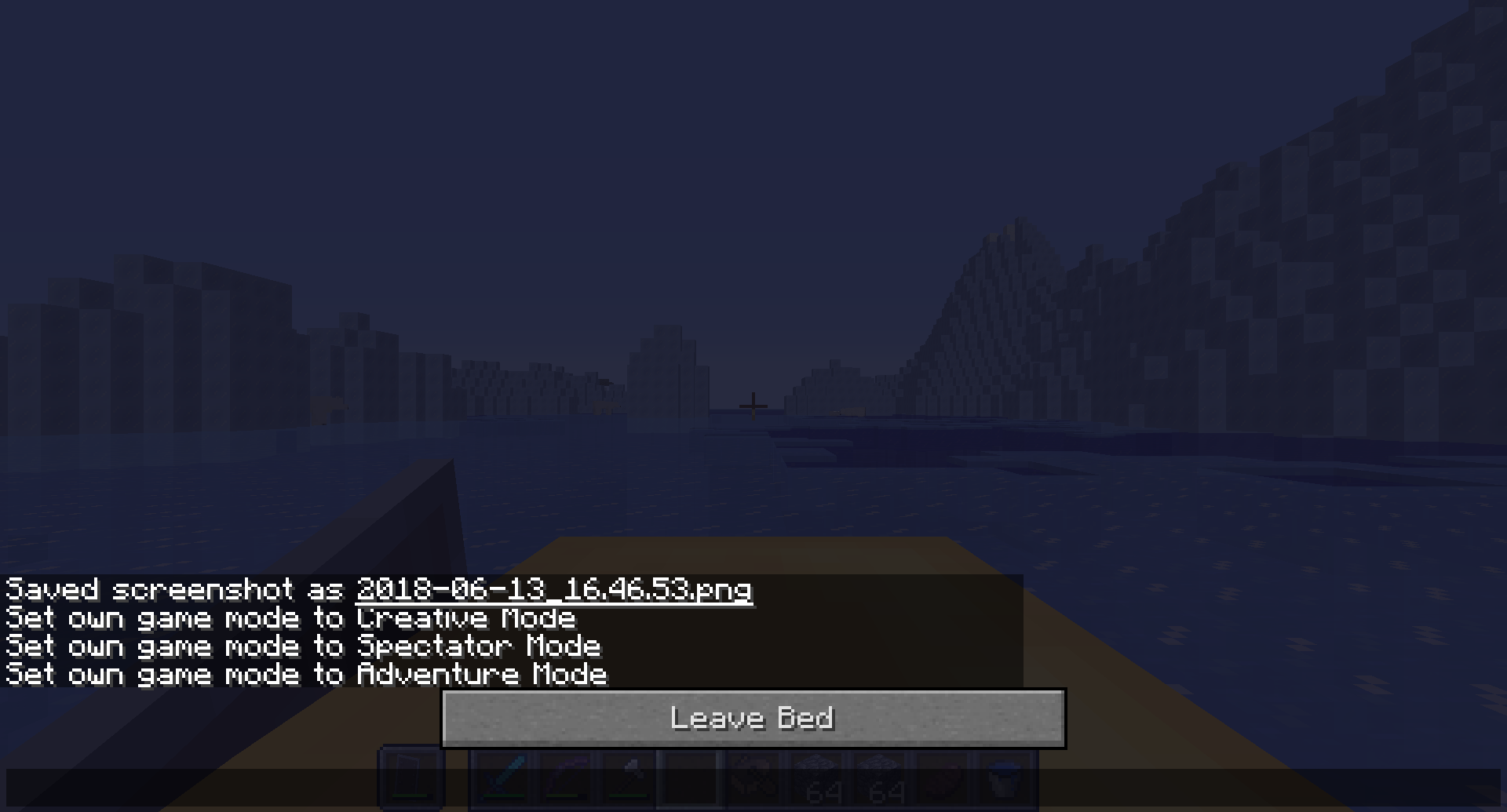 I exited a Nether portal, placed a bed and started sleeping. At the same time as I got on the bed, it became day. I got stuck in bed and the console opened by itself at the bottom of the screen. I cannot complete the sleeping process, I cannot leave bed, I cannot open the menu and exit the game.