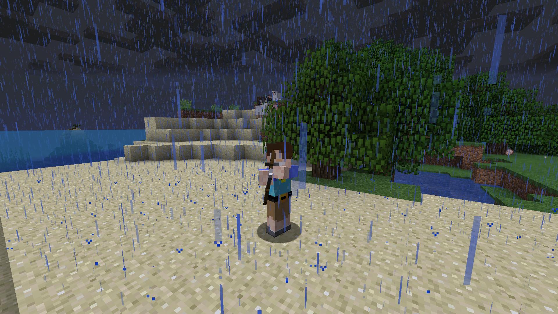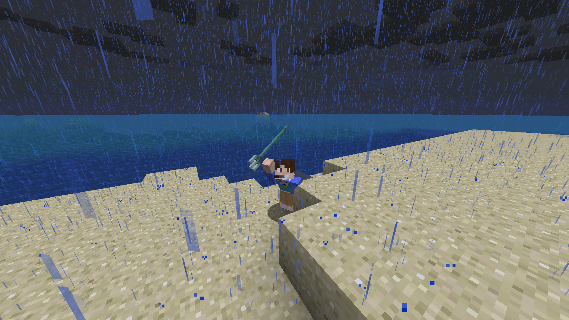 In version 1.13-pre2 when crouching with a bow pulled out or a trident in throwing position the placement of the item is incorrect, ether floating or high on the arm. Screenshots below.