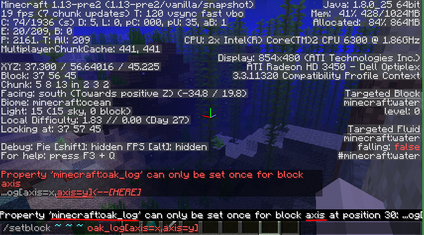 /setblock ~ ~ ~ oak_log[axis=1]Property '%s' can only be set once for block %s