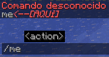 Ex:Uso: /me <acción ...>Enter a world in 1.13 that allows commands.