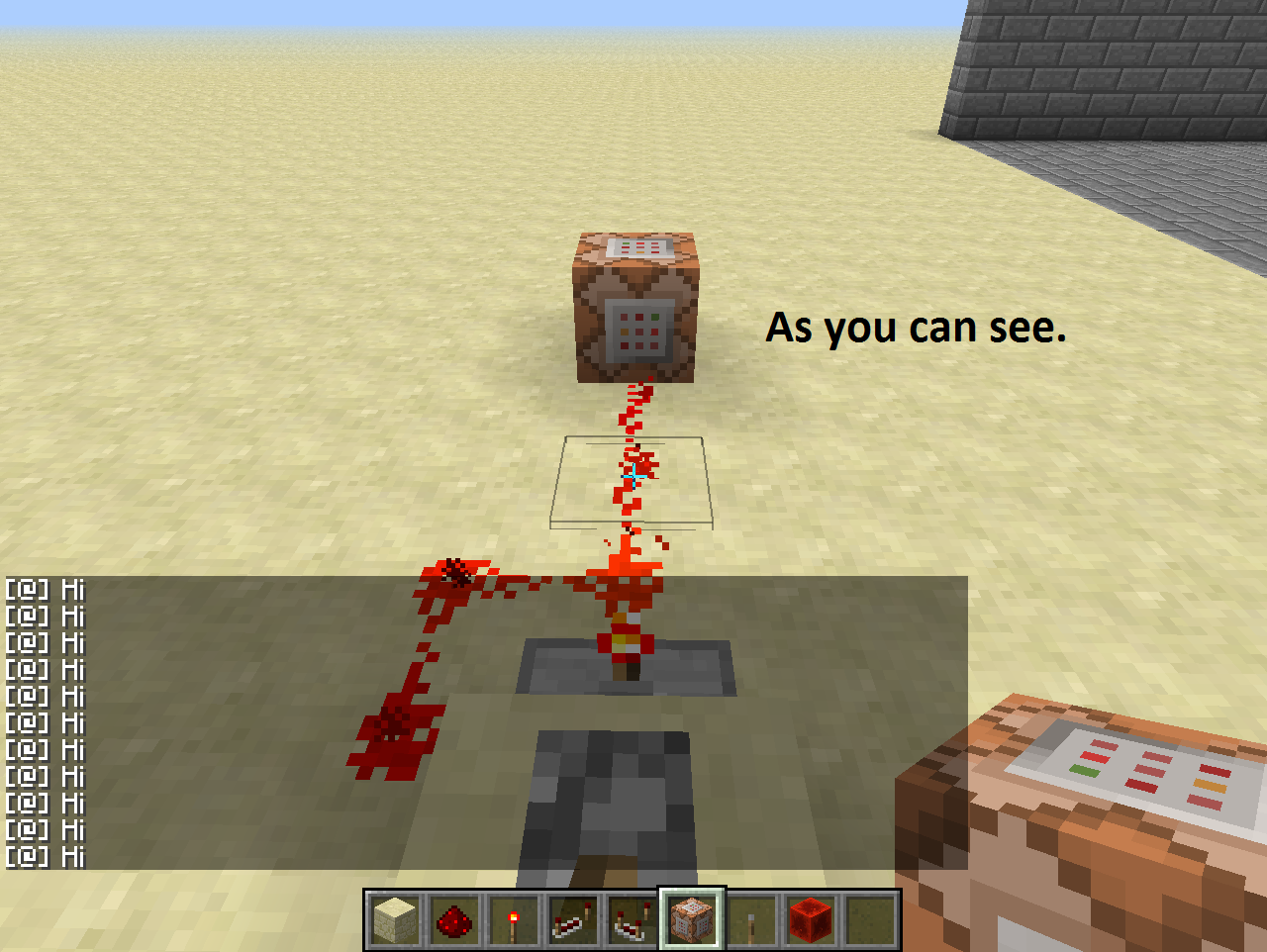 3. Place a command block and write this command: "say Hi" (basically it has to be a command that can be output as text from the command block).