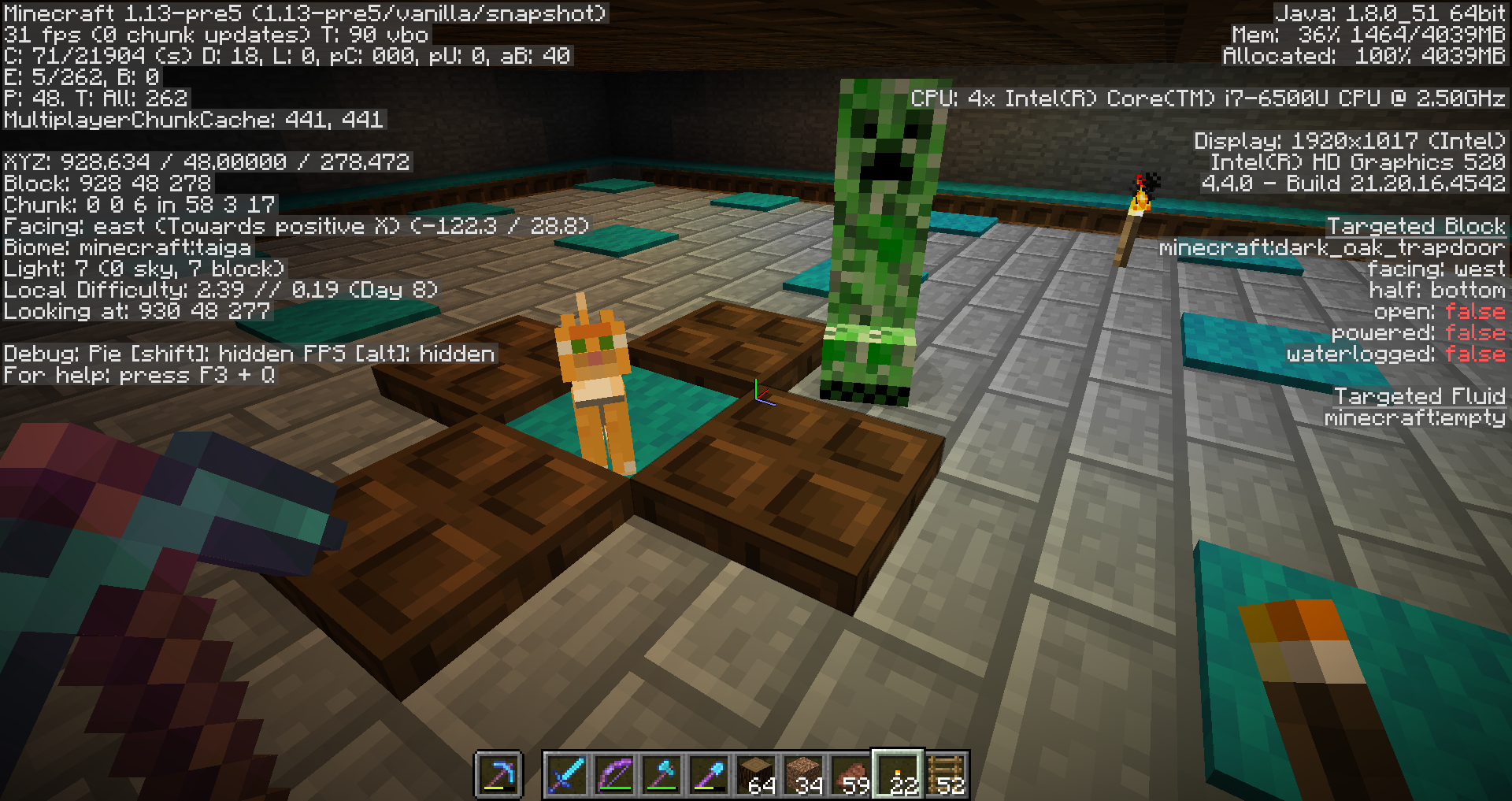 While playing on a multiplayer server I play on which runs 1.13 pre 4, I noticed 2 things. Creepers don't run away from cats in my creeper farm. There are literally 20 of them bunched up together and not moving or caring about the cat.