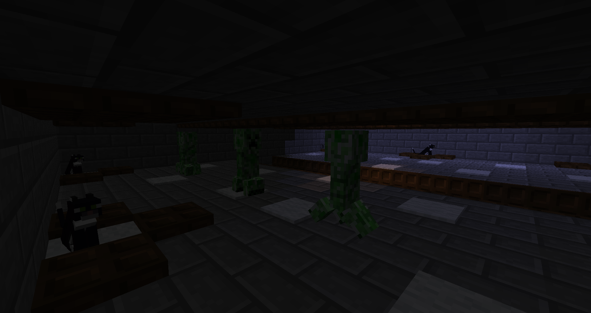 I was making a creeper farm and realized creepers were having troubles getting scared far away by cats. they only ran about 2 blocks when they should have ran 6 blocks away. Also when there is no ceiling they run from cats but never care to go over the edge even when the fall is one or two blocks.