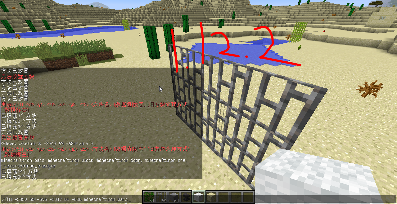 When I was building a park on the farm, I found a flaw in the iron railings. When iron railings are filled with iron railings with (setblock/fill) order, the iron railings on the other side will not be connected.
