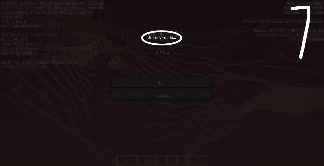 Also, please put all situations the bug is present into your summary. You indicated two situations where this bug exists: entering a different dimension & re-birthing. It's better to make "Joining World" will appear when entering a different dimension and re-birthing the summary, so that the developers can easily capture all situations where the bug is present. (Well, I still don't know from your words if the 5-7 steps indicate "Joining World" will appear when re-birthing is a bug, or that you simply just want to make a contrast that "Joining World" should exist when re-birthing, not when entering a different dimension. If the latter, then the summary shouldn't be changed in this specific case. But, please, imply your meanings more clearer. 🙂)