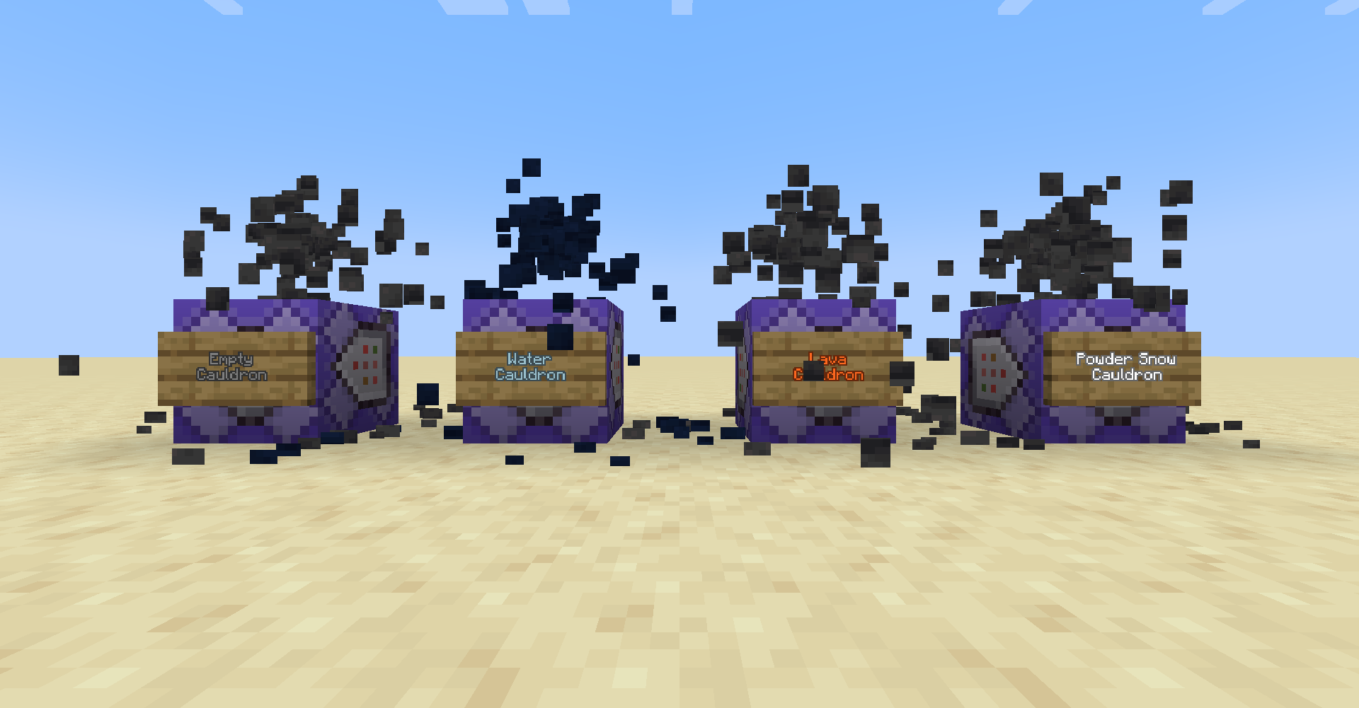 Breaking or sprinting on a cauldron will result in dark blue particles similar to, but not the same as, obsidian.