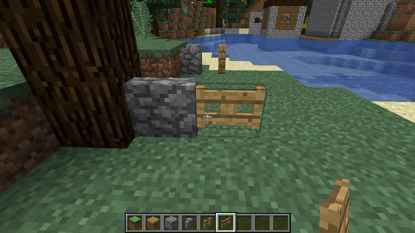 place down a fence gate next to a cobblestone wall (it should connect)