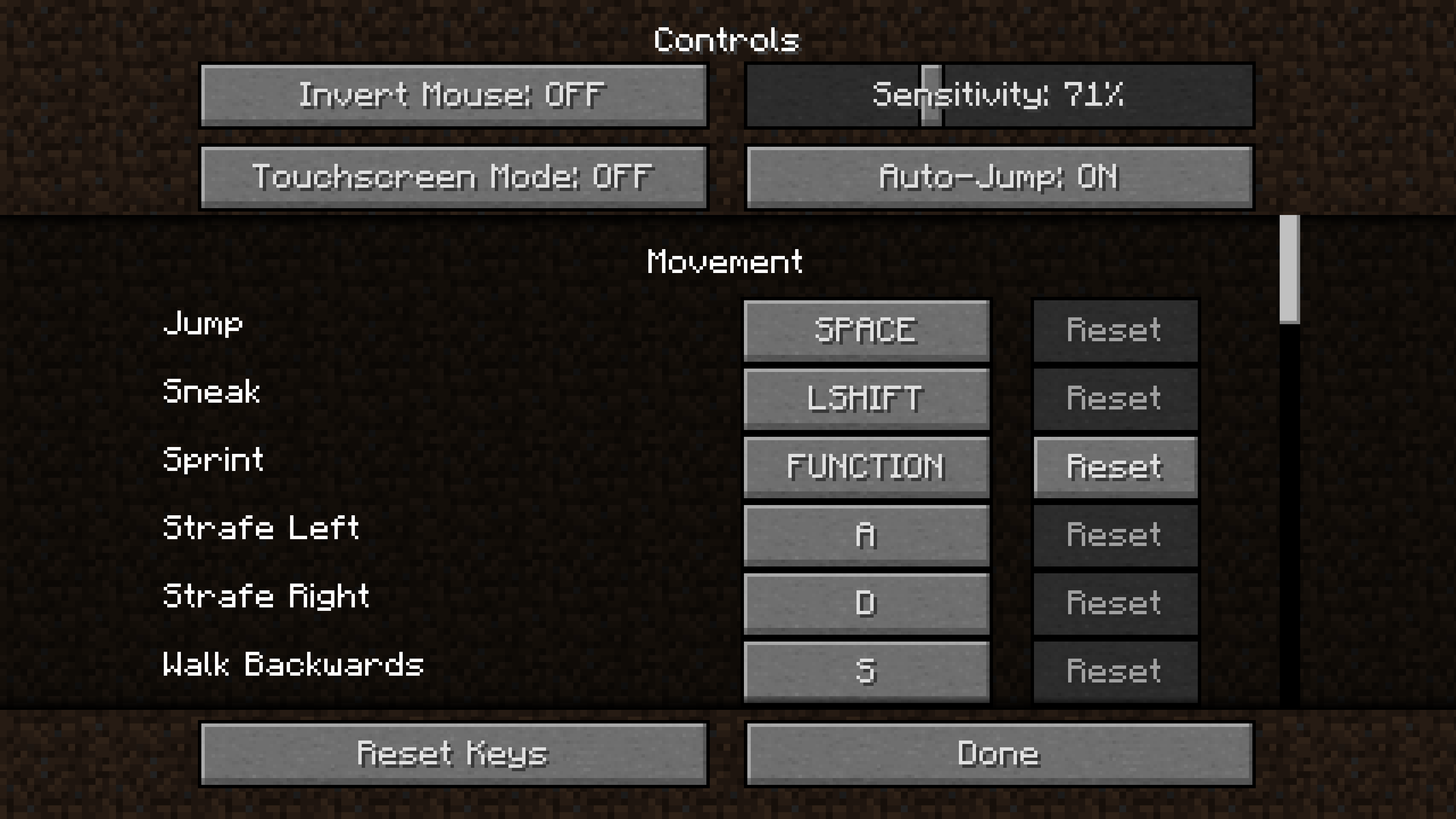 As of Minecraft 1.13 Pre-Release 7, the "Function" key is not applicable to your controls. Contrast to prior versions where it was.