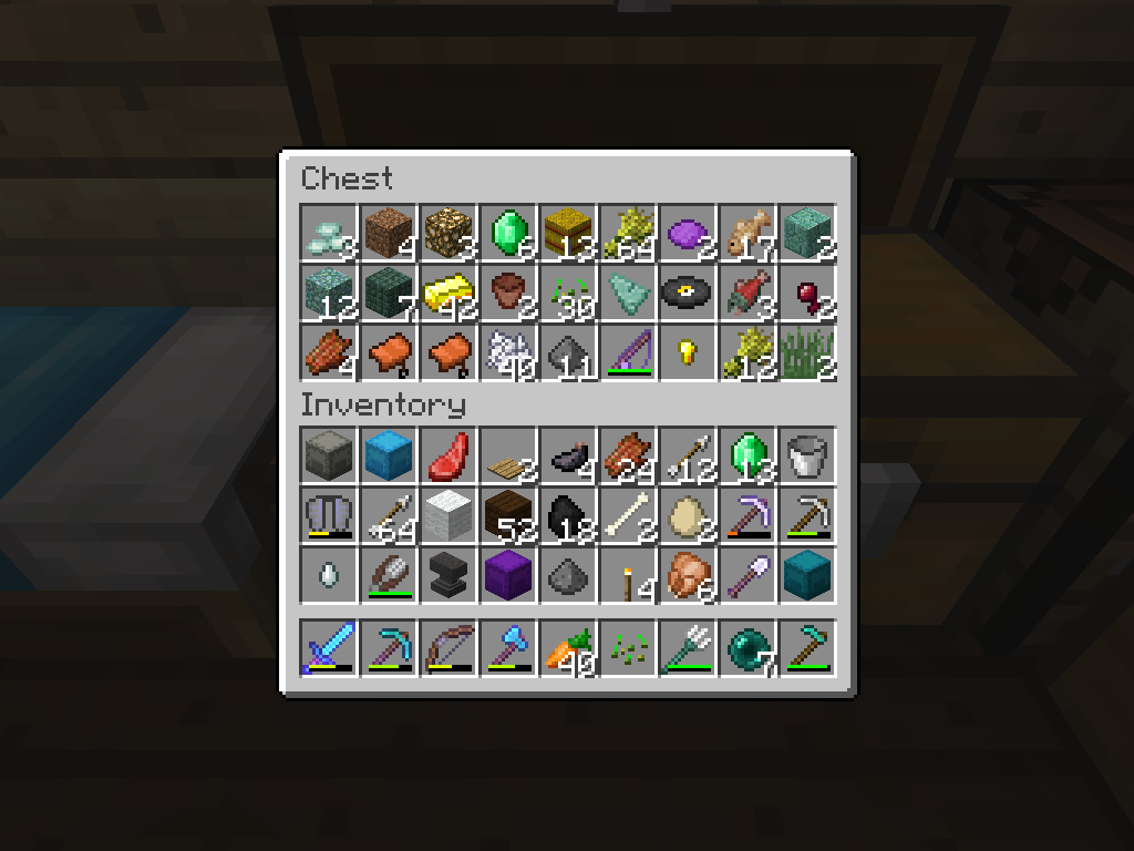 Opening the chest from the left side causes the entire double chest lid to open, but opening the chest on the right side will cause only the right side of the lid to open.