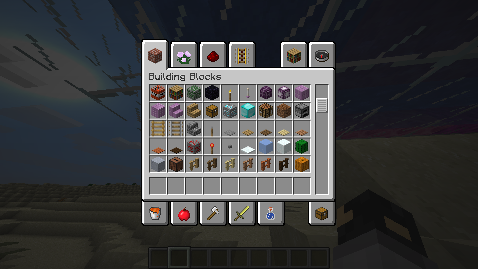 Upon switching between full screen and windowed mode with the f11 shortcut, the currently selected creative tab will show all blocks and items rather than only what it should. Switching tabs or reopening the inventory fixes this.