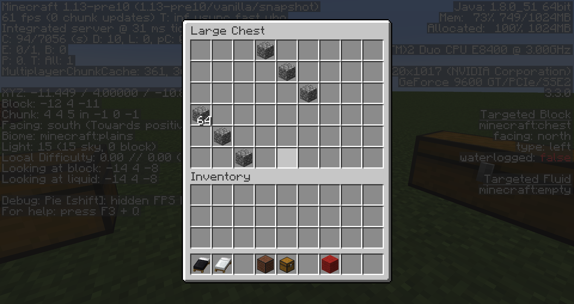 When the world is converted from 1.12.2 to 1.13-pre10, the items in some double chests are transposed between the top half and bottom half of the double chest.