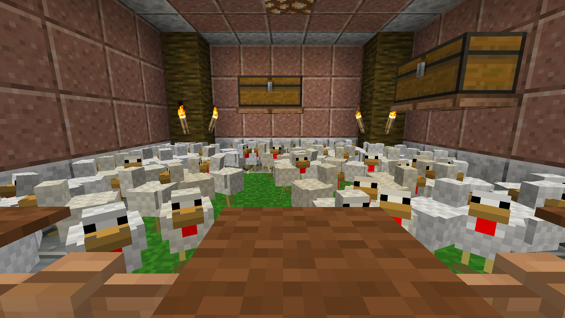 When large quantities of chickens (have not tested other mobs) are in an area, there is a very distinct crackling amidst all of the clucking. See the attached picture for a look at my chicken pen, so you can see how many there are. With that amount of chickens the crackling is almost as annoying as 100+ chickens clucking at once. I'm not sure what would cause this, maybe something with the chicken's audio file for clucking? I could not hear a crackle when it was only a few chickens.