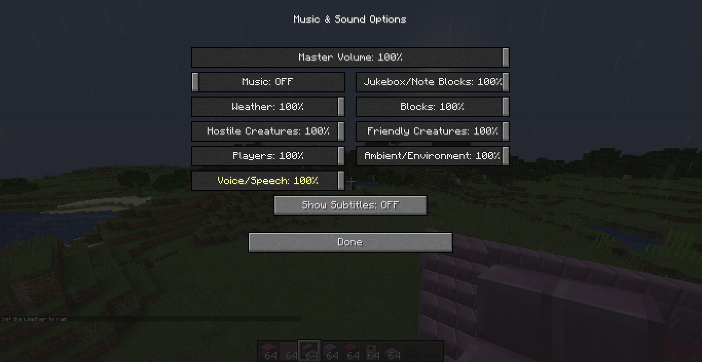 I was playing MC when it started raining so i was like noo rain and i was expecting alot of noise but no noise rain came so i was like wat so i decided to come here and make a bug report