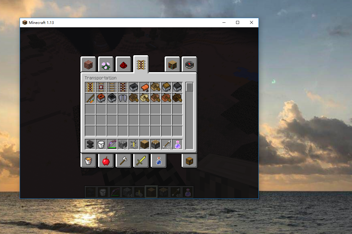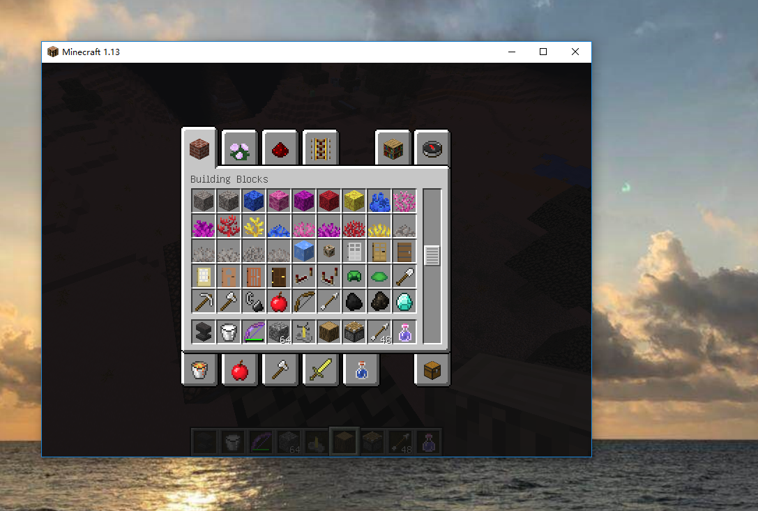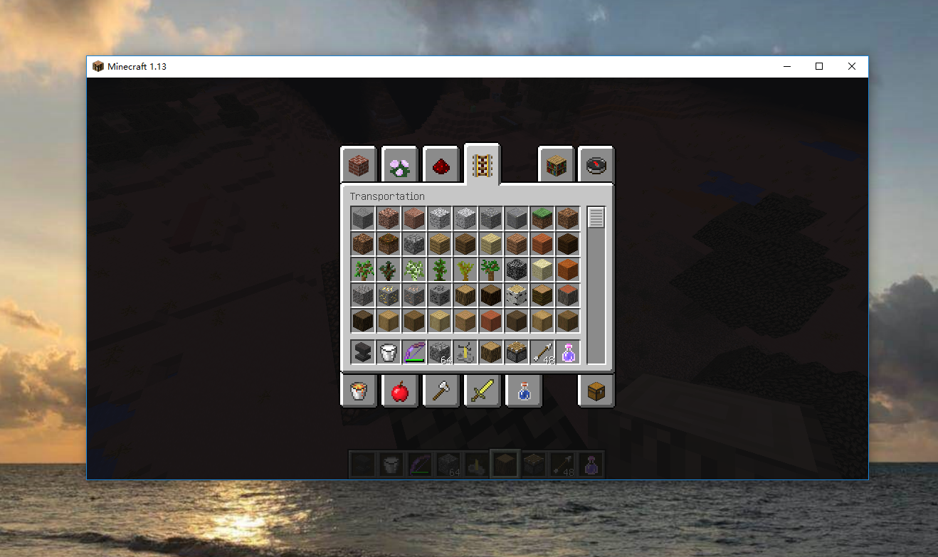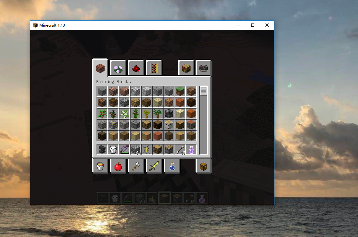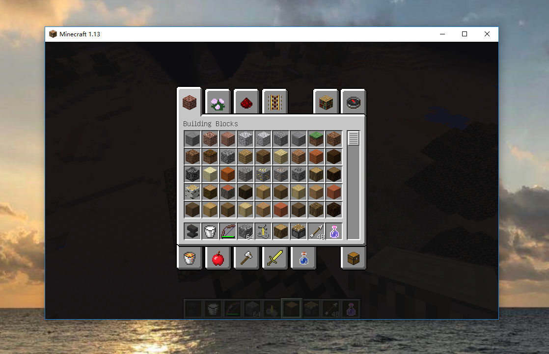 Creative inventory stay opened and change game interface size. Than the page ,whatever Building Blocks, Decoration Blocks, Redstone and so on, while be the same page. A page include all these staff.