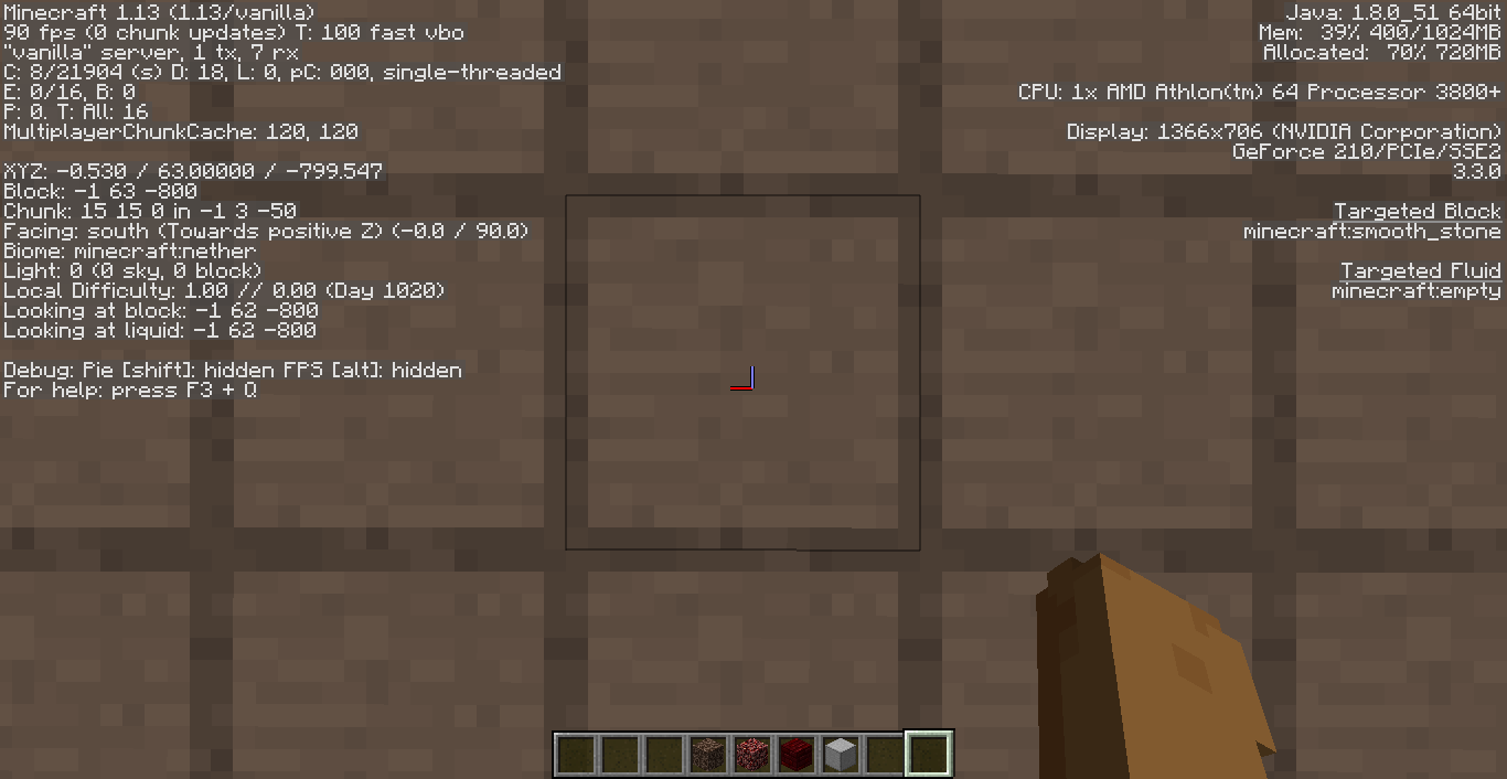 Positive coordinates display xyz just fine but negative xyz coordinates are off by one in the x and z by what I presume is block -1 is treated like -0 in xyz position. In the screenshot the F3 menu says Block: -1 63 -800 where XYZ is -0 63 -799.