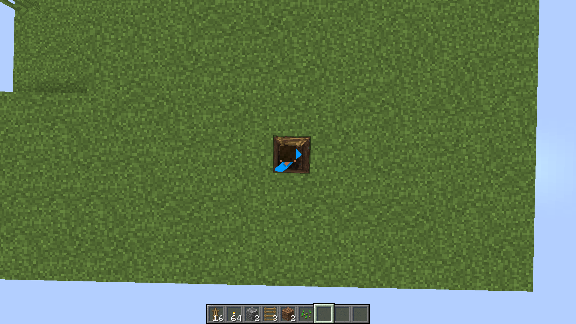 This glitch happens when facing the camera directly downwards in third person mode while climbing down a ladder that's close to the surface, the only blocks in the chunk that the player is currently in are shown.