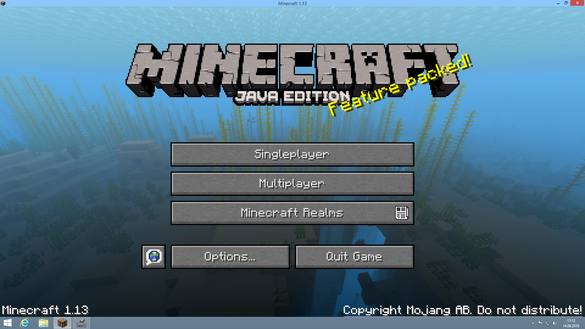 On the title screen when you hover your mouse over " Copyright Mojang AB. Do not distribute!" it gets underlined. When you open Minecraft in small window mode or in fullscreen this line has an appropriate thickness. But when you have Minecraft in maximized Window mode this line is very thin and bareley visible. Probably it is cut off by the border of the window.