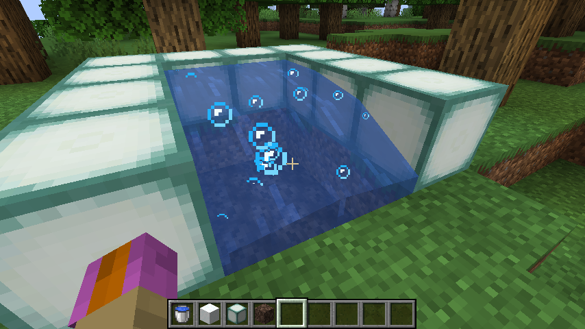 Bubble particles would only be produced within water source blocks and not extend into flowing water.