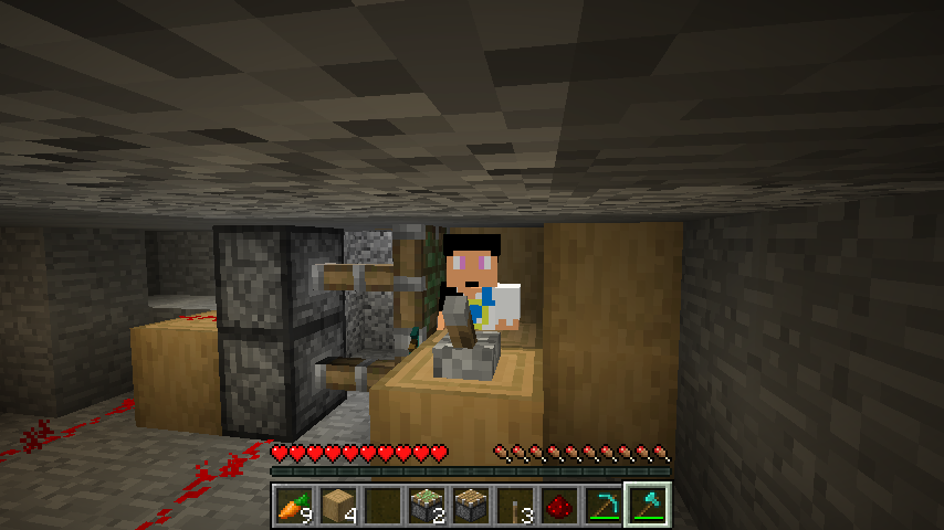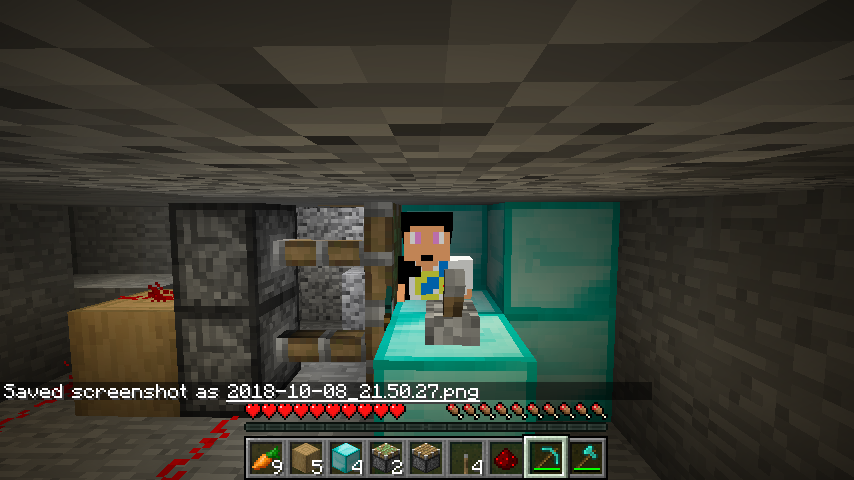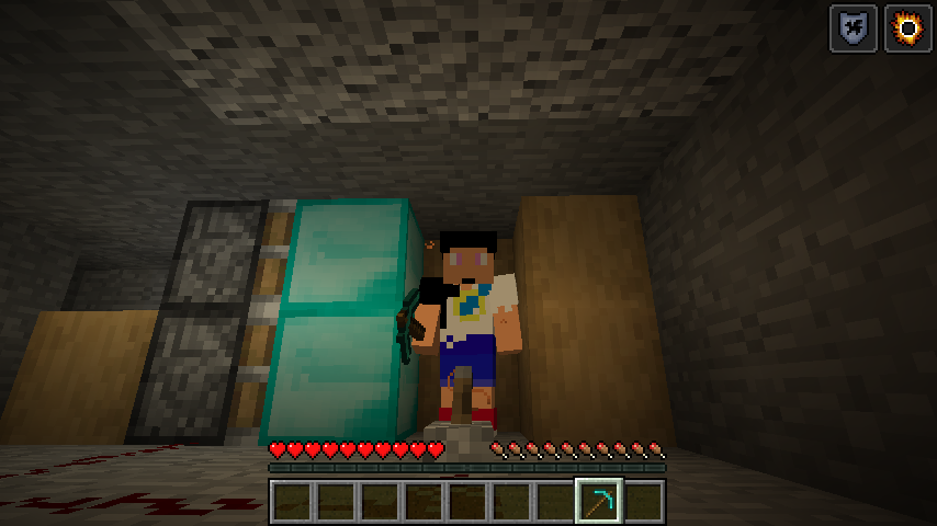 3. Break the block on your view. Also, you won't need blocks surrounding you if you're doing it with glowstone, and mobs won't need any support blocks, even if it's in a diamond block. It won't get pushed out.