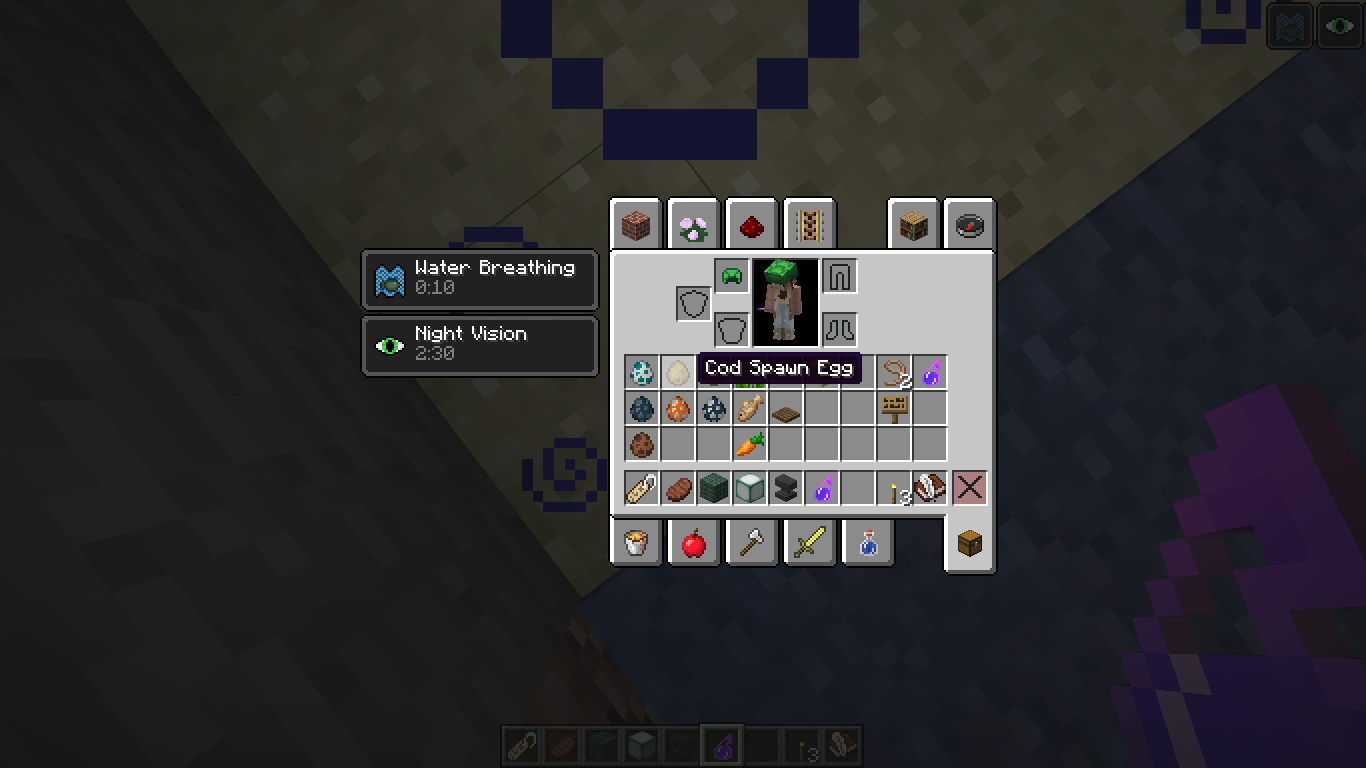On a singleplayer world I used a splash potion of night vision but it would not wear off because the effects kept renewing . Every few seconds, the sky bugged out and became black under a line in the sky. In order to get rid of the effect I had to use the '/kill DogGirl108 ' command.