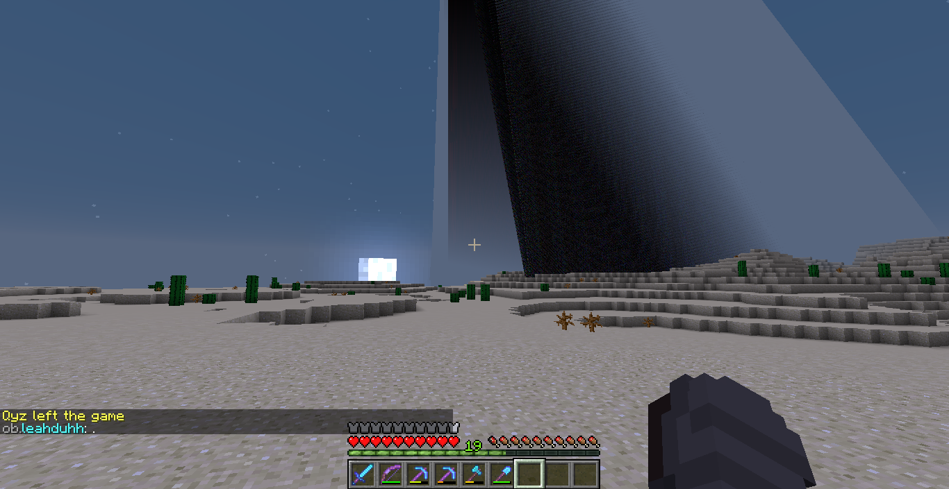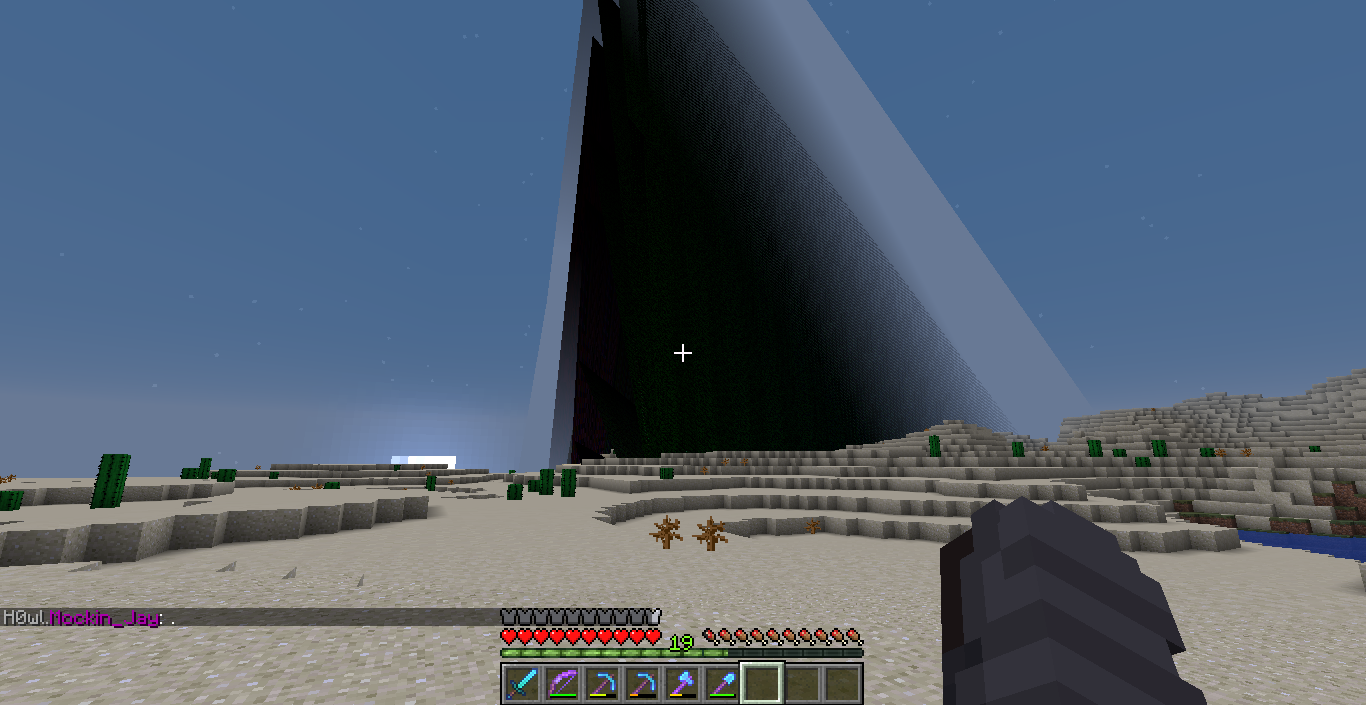 I was moving around in the desert but then I noticed that the screen started to glitch and make flying stuff like black pyramids etc. I thought that it was from my PC but then I realized that it was from the game itself when I took the picture of the situation.