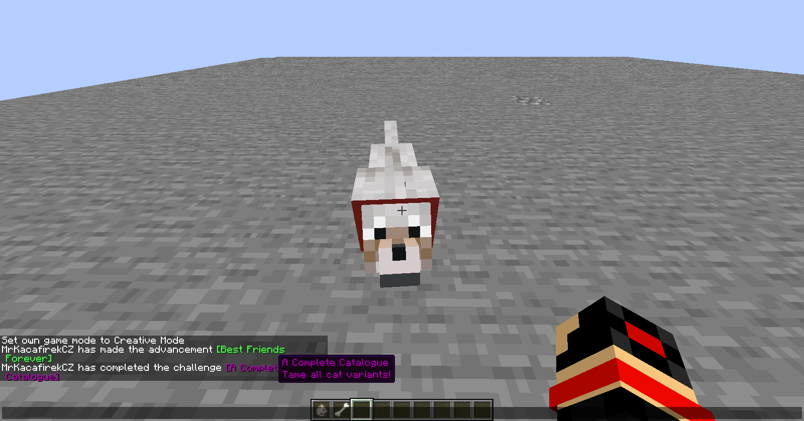 I was experimenting with cats added in the snapshot 18w44a and I wanted to see what happens when I spawn a wolf. Nothing happened so I tamed it and it gave me an advancement "A Complete Catalogue", which you should be able to get only if you tamed all cat variants.