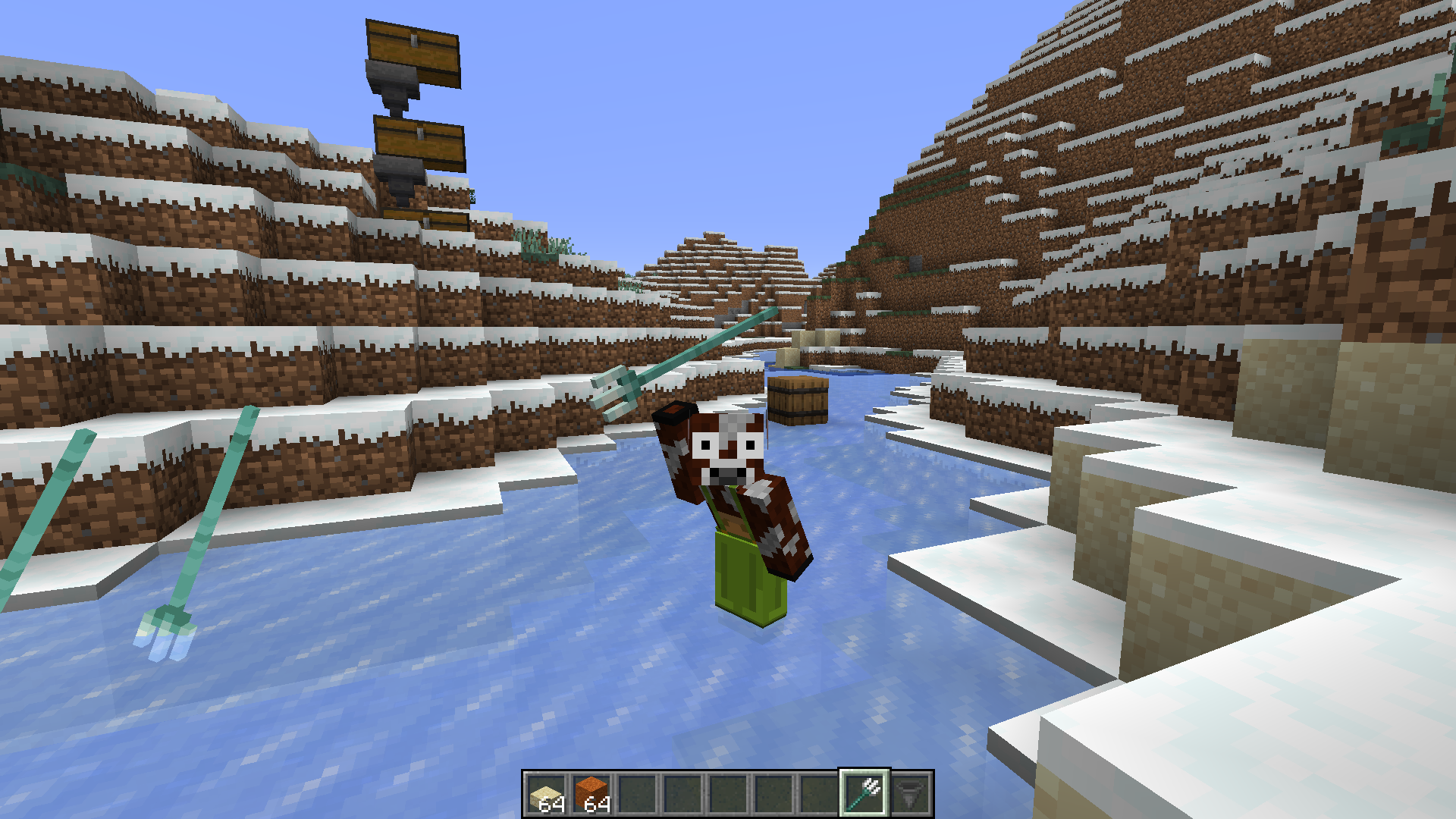 Channelling trident when holding shift moves it from player's hand and makes it look as if it's levitating and player no longer holds it in his arm.