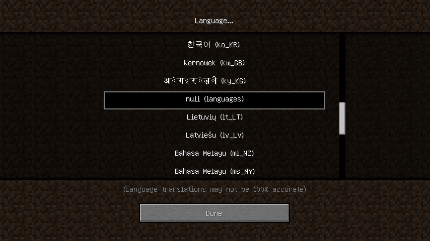 In the "Language..." there is a language "Null" with the word "languages" in parentheses. It is the same as in English, but with a thin font. (Fixed in 13w24b)