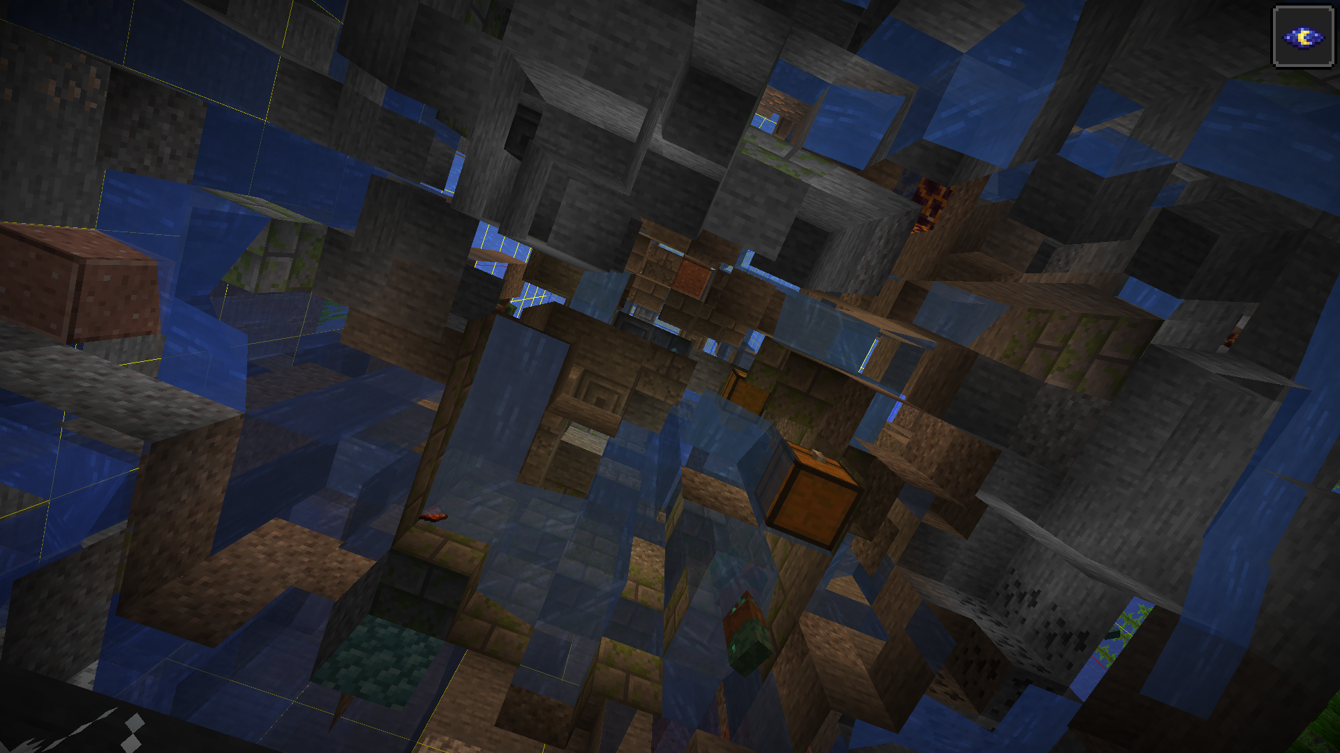 I am not sure how rare this is, but an ocean ruin spawned completely messed up within this chunk.