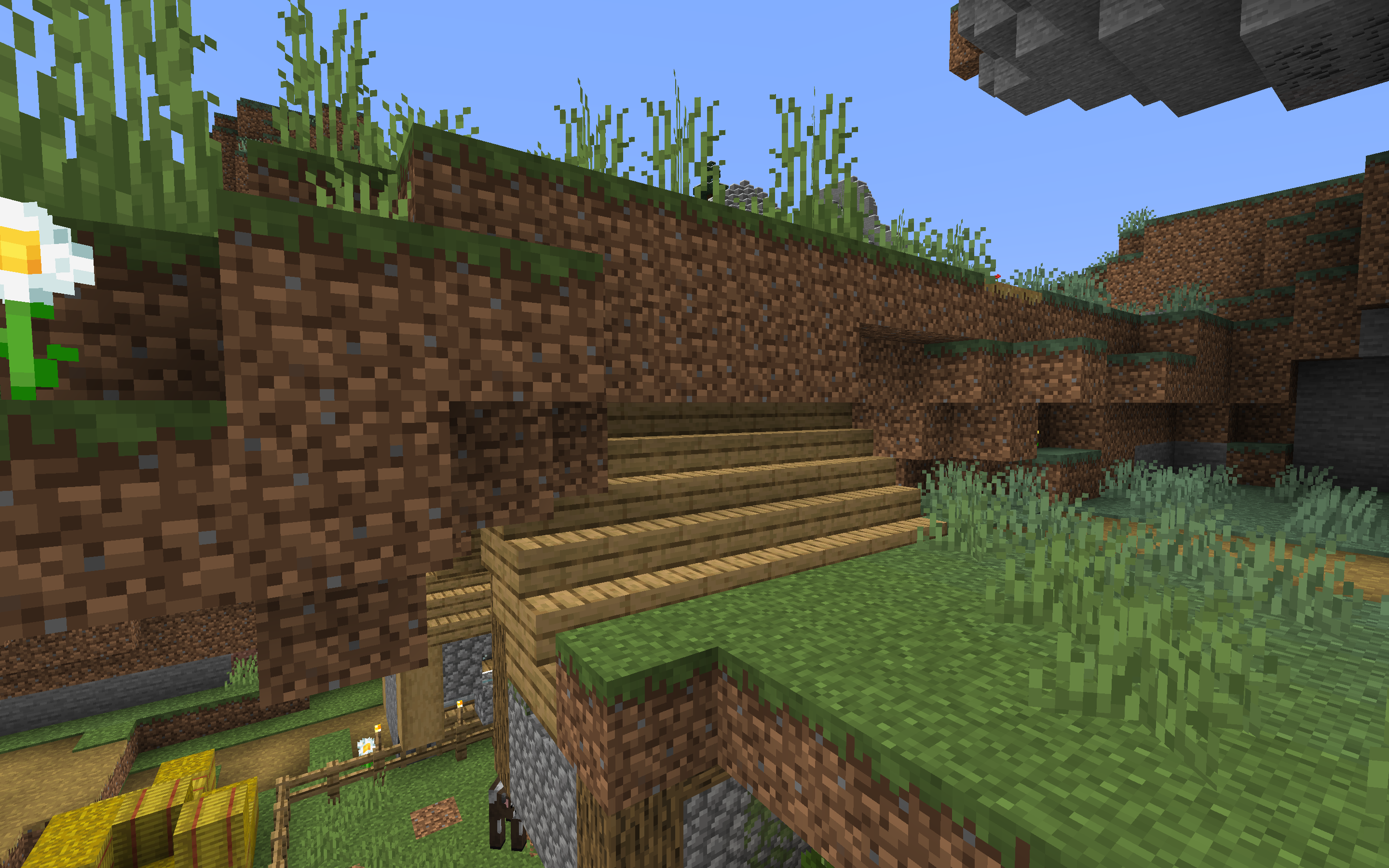 I came across this village with a house under an overhang and some of the blocks are taken away, I don't know if this is intended or a glitch. But I just wanted to report it just in case. Seed: 8226738137955462167 Coords: 149038 75 261147 99 15