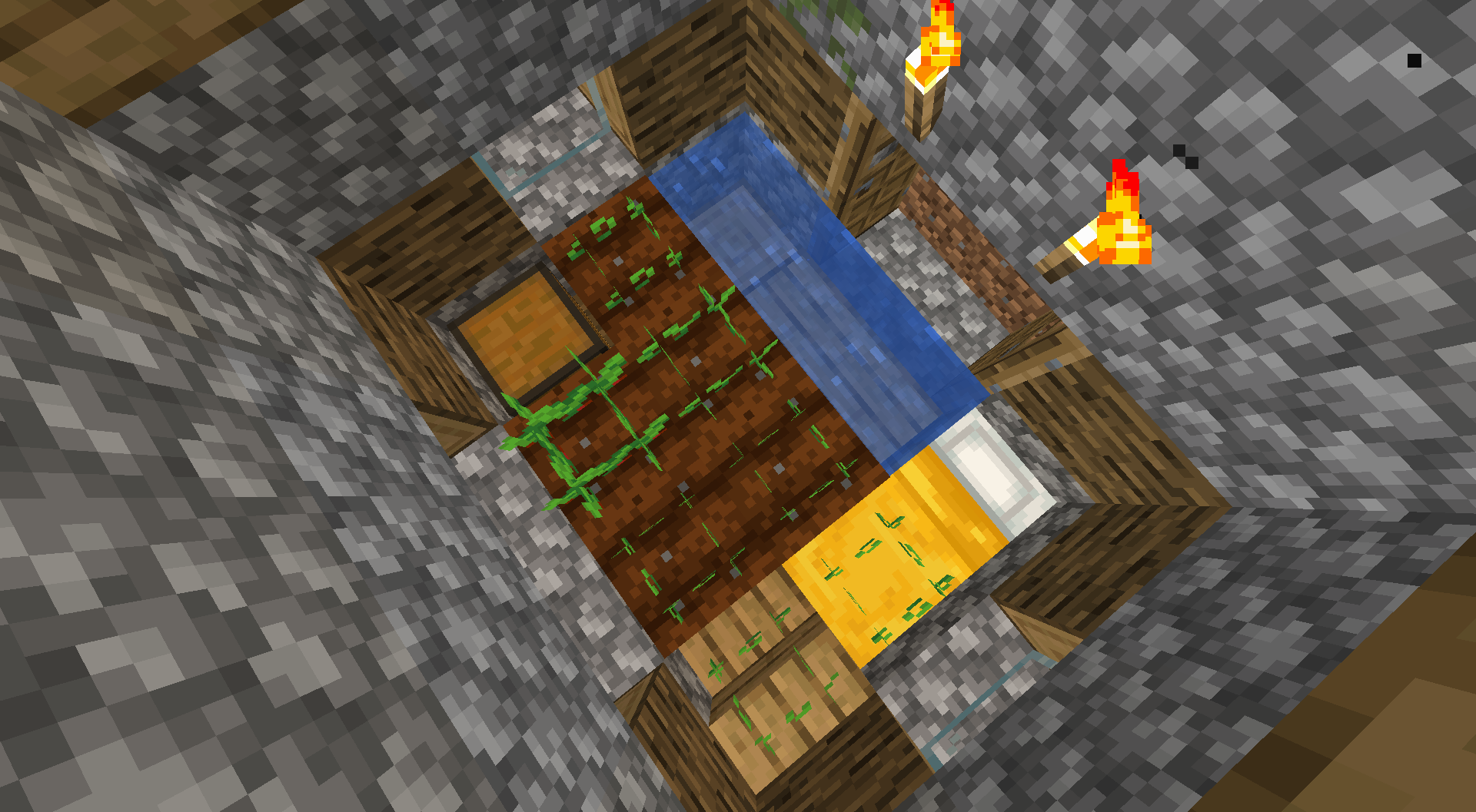 A building and a farm are generated in the same spot.