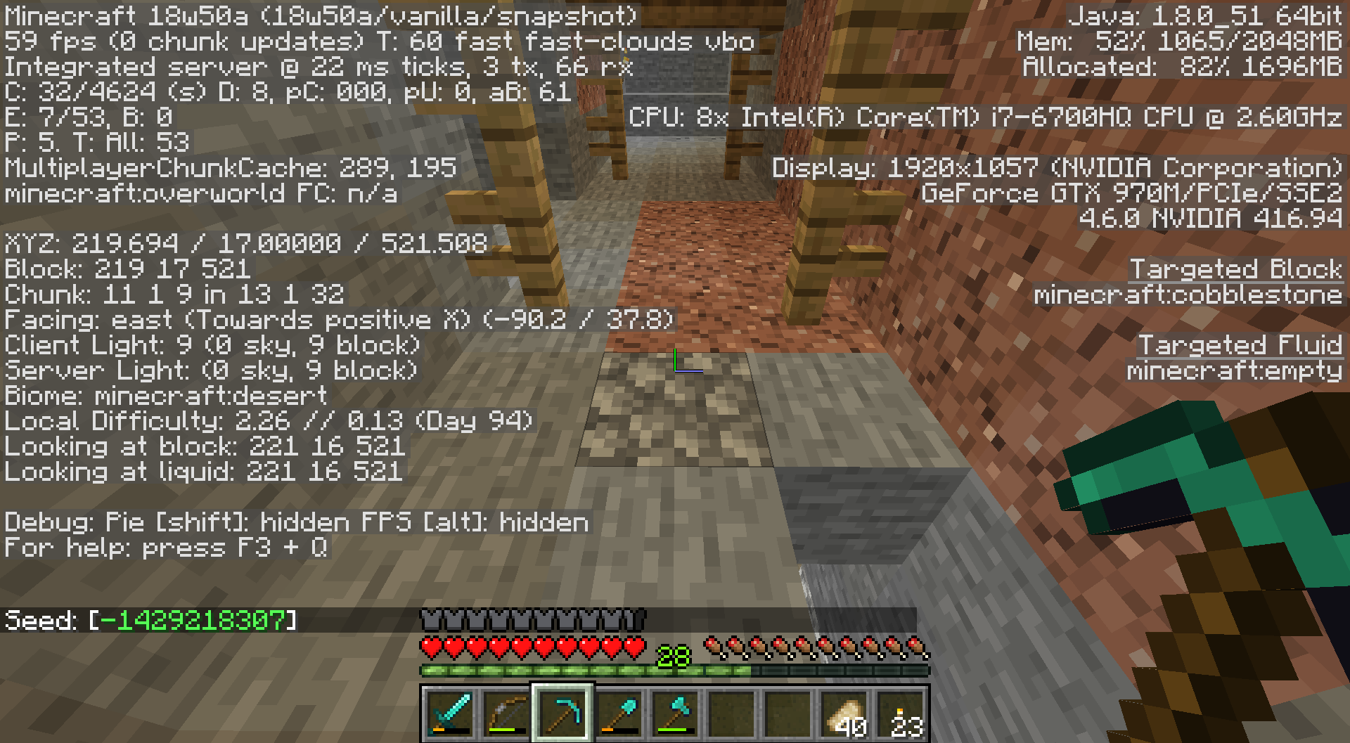 It looks like closing and reopening the world has fixed the issue, but I've added a new pic with coordinates and seed.