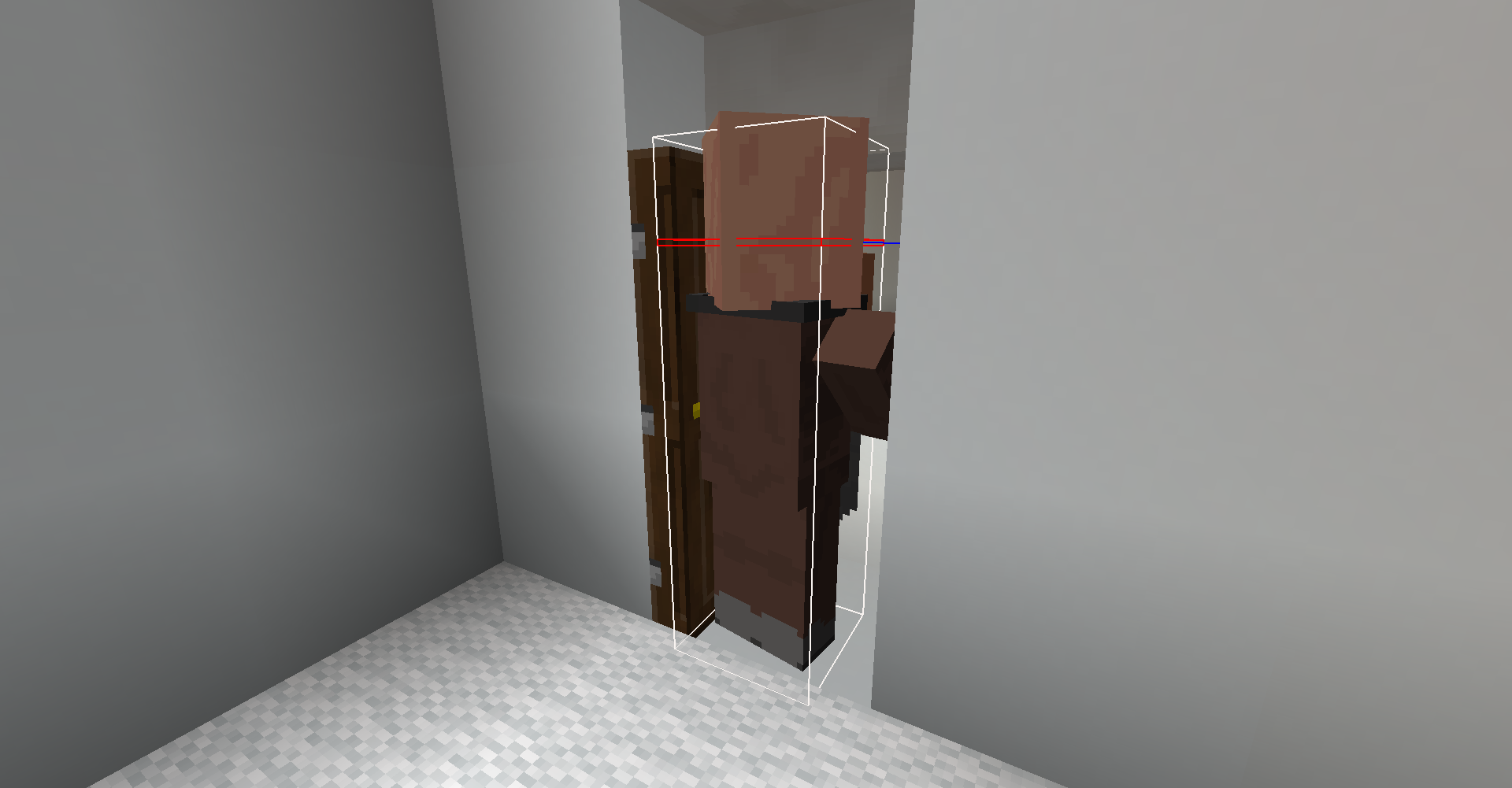 I'm not sure if this counts as a bug. The villager hitbox is too tall for them to pass through a door with a block above it if they are standing on a carpet. They still recognize the door as a valid part of a village and will repeatedly open and close it, trying to pass through. Other entities of comparable sizes, such as the player, can fit through under the same circumstance. This places an unnecessary limit on building, as I can't place carpets next to doors if I want villagers to be able to pass through.