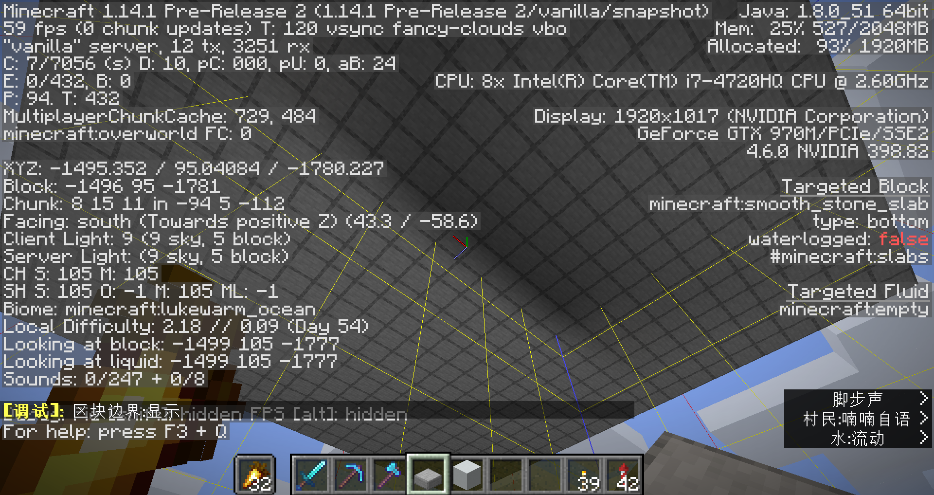 And there are two issues shown in my screenshot: on the right-hand side, no light is appearing around light sources, which is reported in MC-142134; on the left-hand side, skylight is shining through the concrete roof, as shown in the F3 screen, which matchs the description of both this ticket and MC-149518, I think.