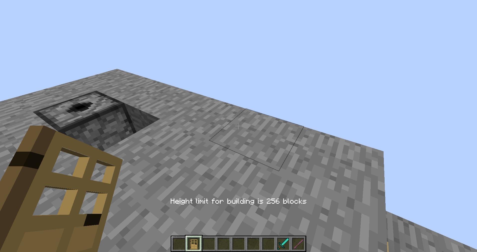 When a door (or 2-block plant) is placed so that the top half of it would be above the world build height, it refuses to be placed, but the usual message about the world build height being there is not shown. Placing one so that both halves would be above the limit shows the error as usual.