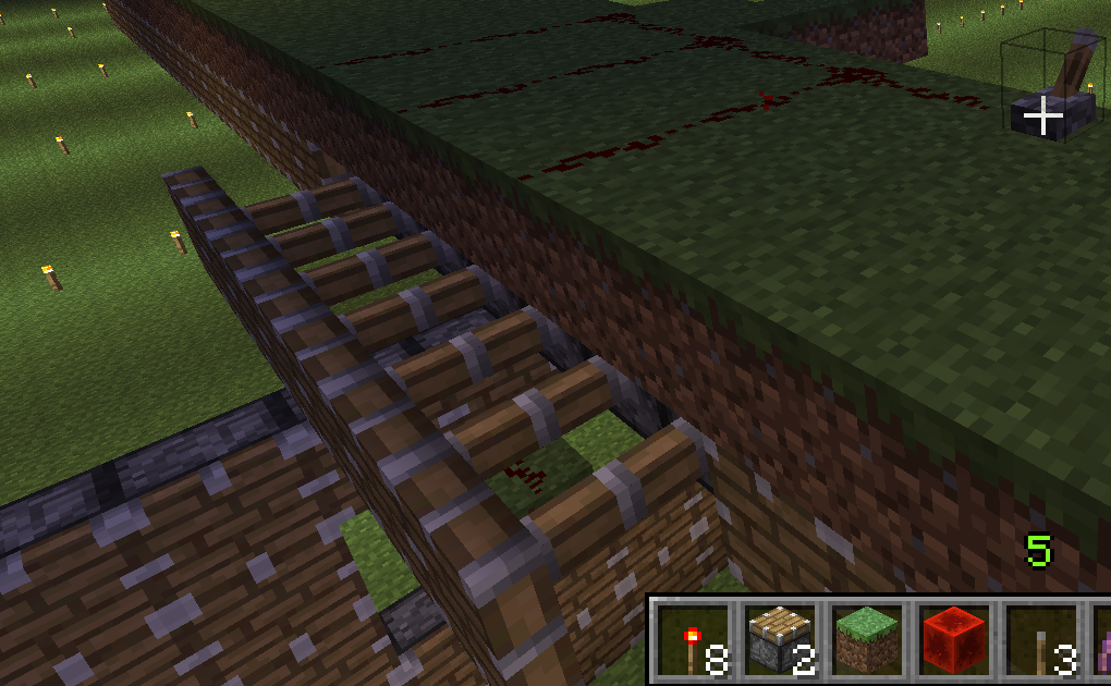 3. make a trail of dirt heading any which way and cover it in redstone dust