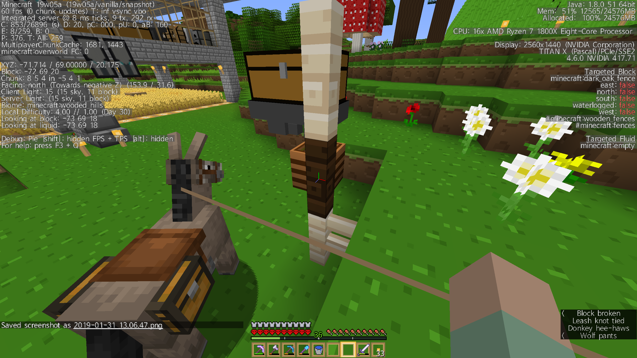as you can see at attachments, I tied a lead to a donkey and the dark oak fence. but lead looks like a long way... and I destroyed dark oak fence, lead is back in my pocket.