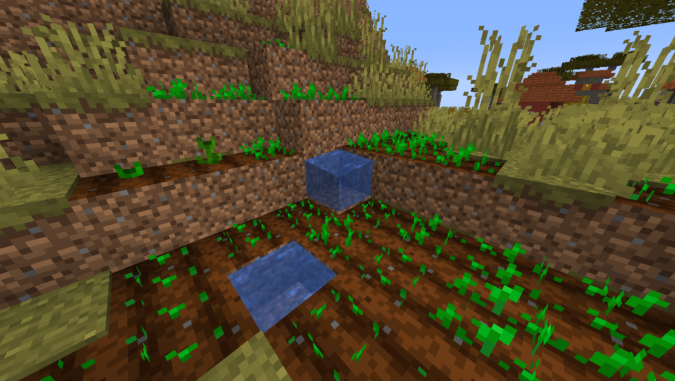 Last time I created a new map and /tp randomly on the mpa, I found a savanna village. This village was strange, all the fields were full of water, like the water sources destroyed crops everywhere, or they are just not moving, like if they were solid bloks. Here's some screenshots.