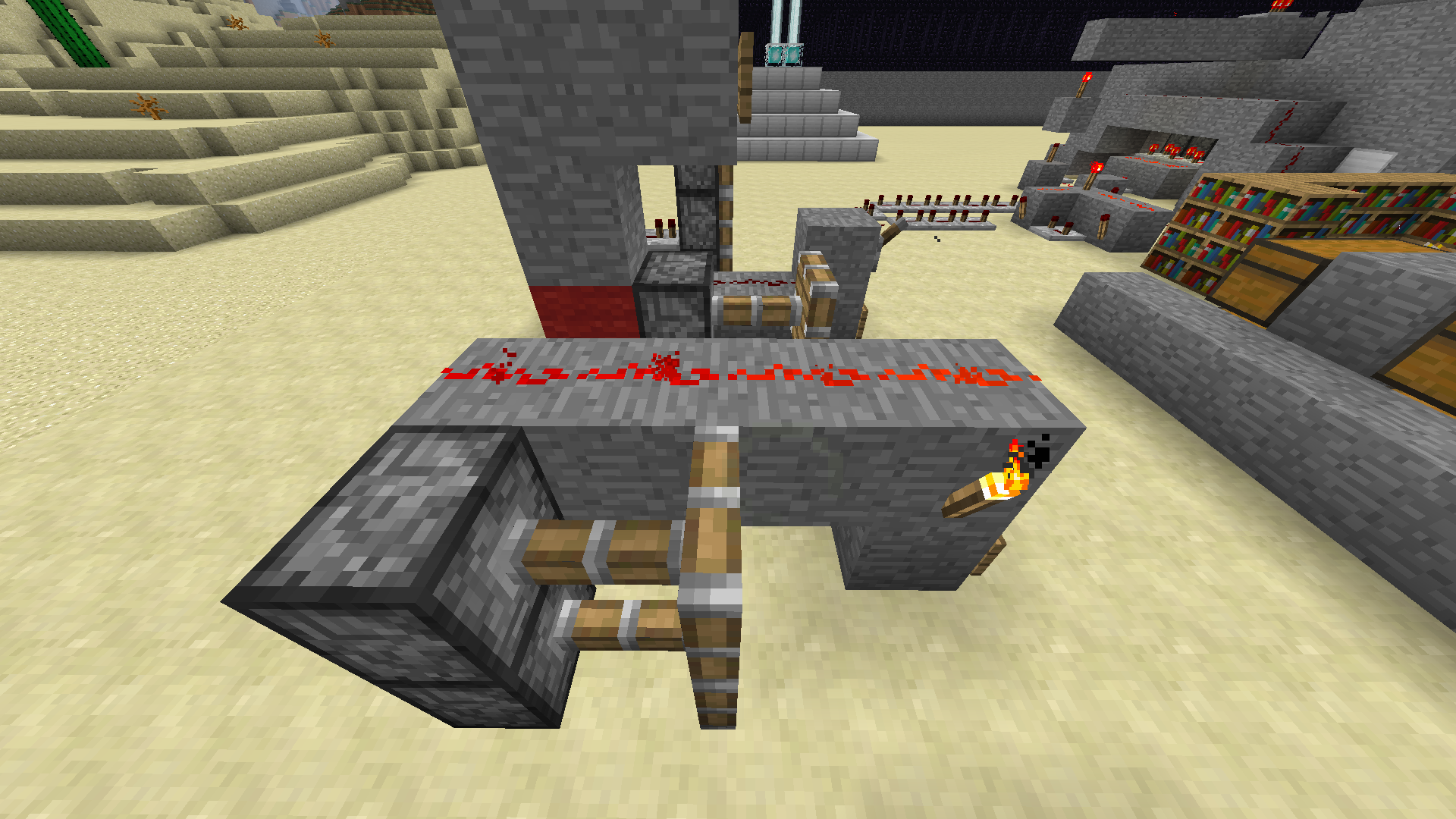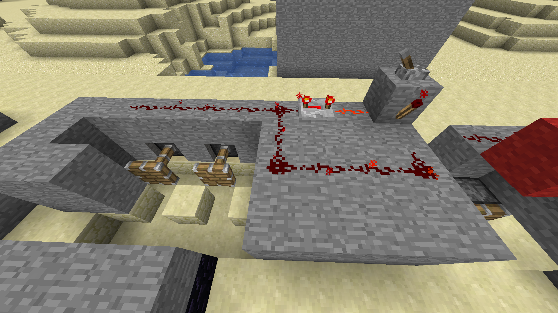 Image 4th bug: Both pistons are powered by the redstone. (Only the upper piston should work)