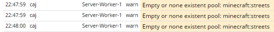 22:47:59 caj Server-Worker-1 warn Empty or none existent pool: minecraft:streets