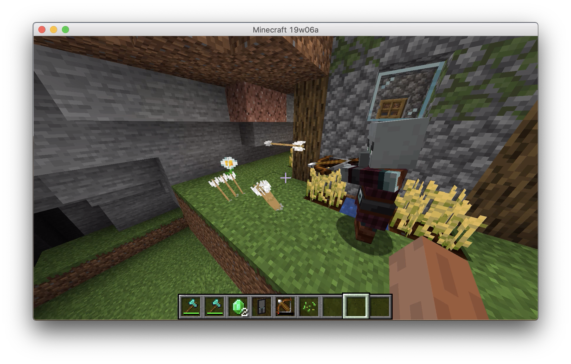 Then I summoned a pillager in a cave and, the pillager started to shoot the stone wall(or the flower) WITHOUT A VILLAGER or someone else.