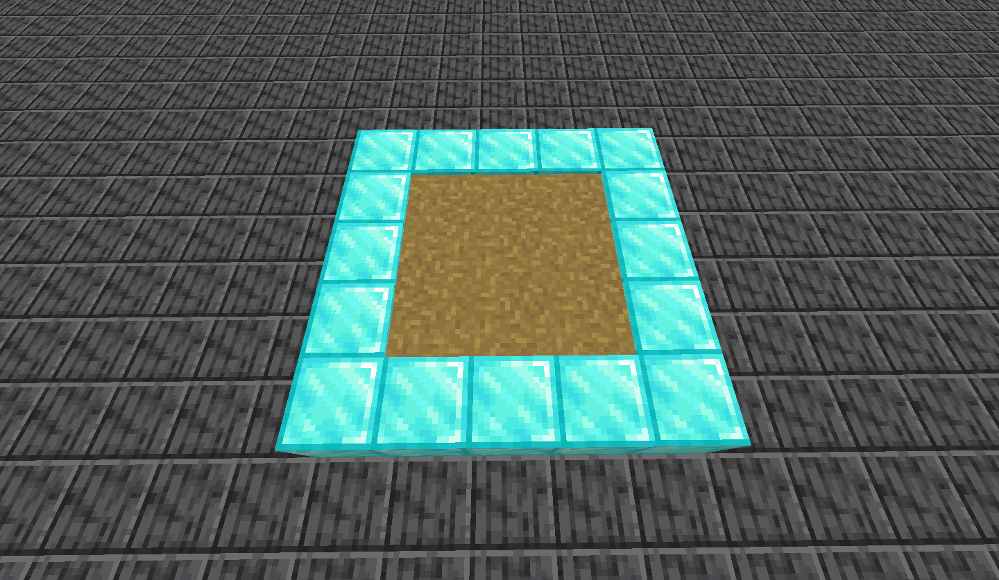 The minecart would be able to be pushed from the dirt path to the diamond block.