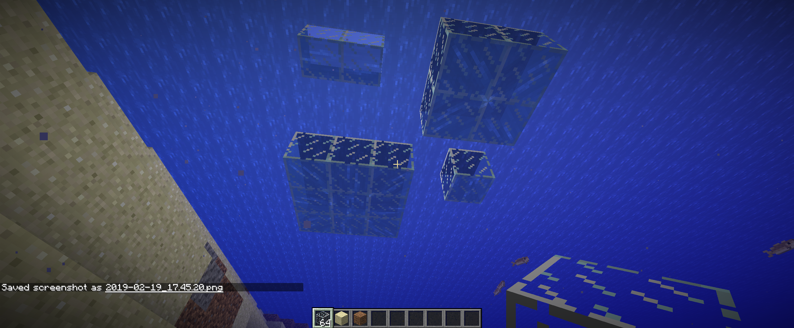 Whenever a glass block is surrounded by at least 1 block of water and 1 block of glass, the block of water underneath it shows it flowing to the center of the glass blocks.