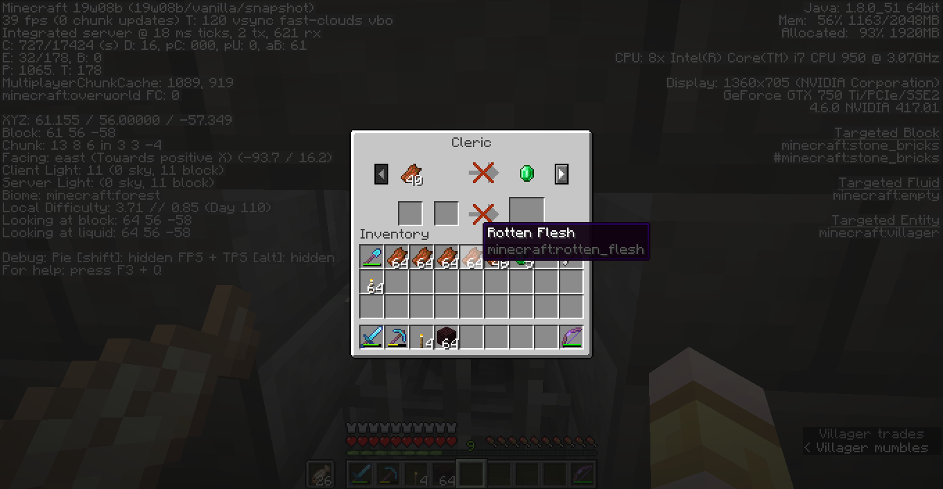 Also, there is a point whit all villagers that they block the trade, giving back all the trade items, e.g. 40 zombie flesh AND 1 emerald
