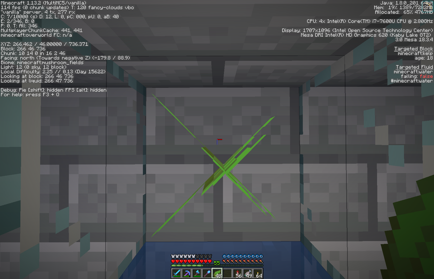 → observe current 'age' value using F3Place another kelp on top of it