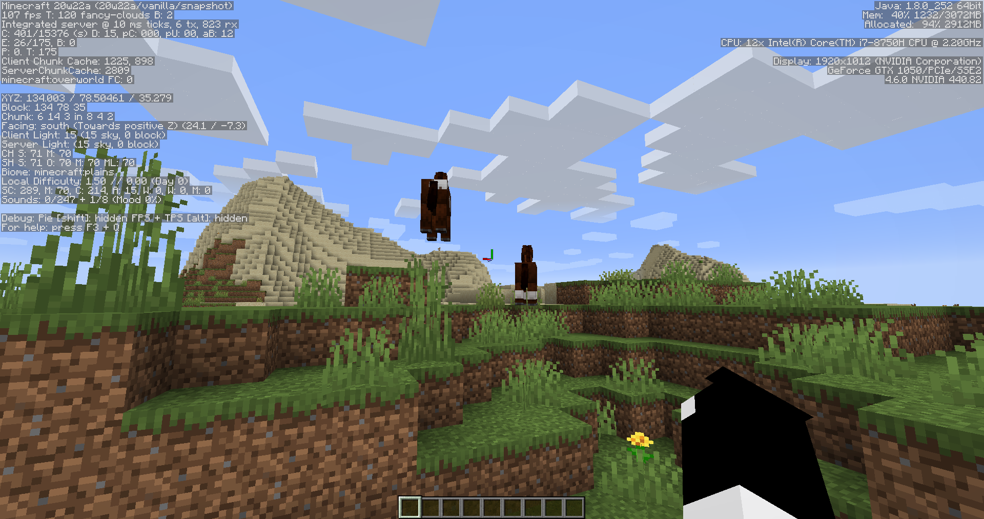 I discovered a horse floating one block above the ground. It was floating above a regular grass plant (minecraft:grass). Next to it was its two foals. Upon attempting to ride the floating horse, the horse stopped floating and fell to the ground. There is not a single command block or function/datapack that could be giving a horse the NoGravity NBT tag, repetitively teleporting a horse to one specific block, or placing a barrier block below it. I did not interact with the horse in any way before I noticed it floating. I did, however, see it not floating when I loaded the chunk for the first time, but upon wandering around more and coming back, it was floating.