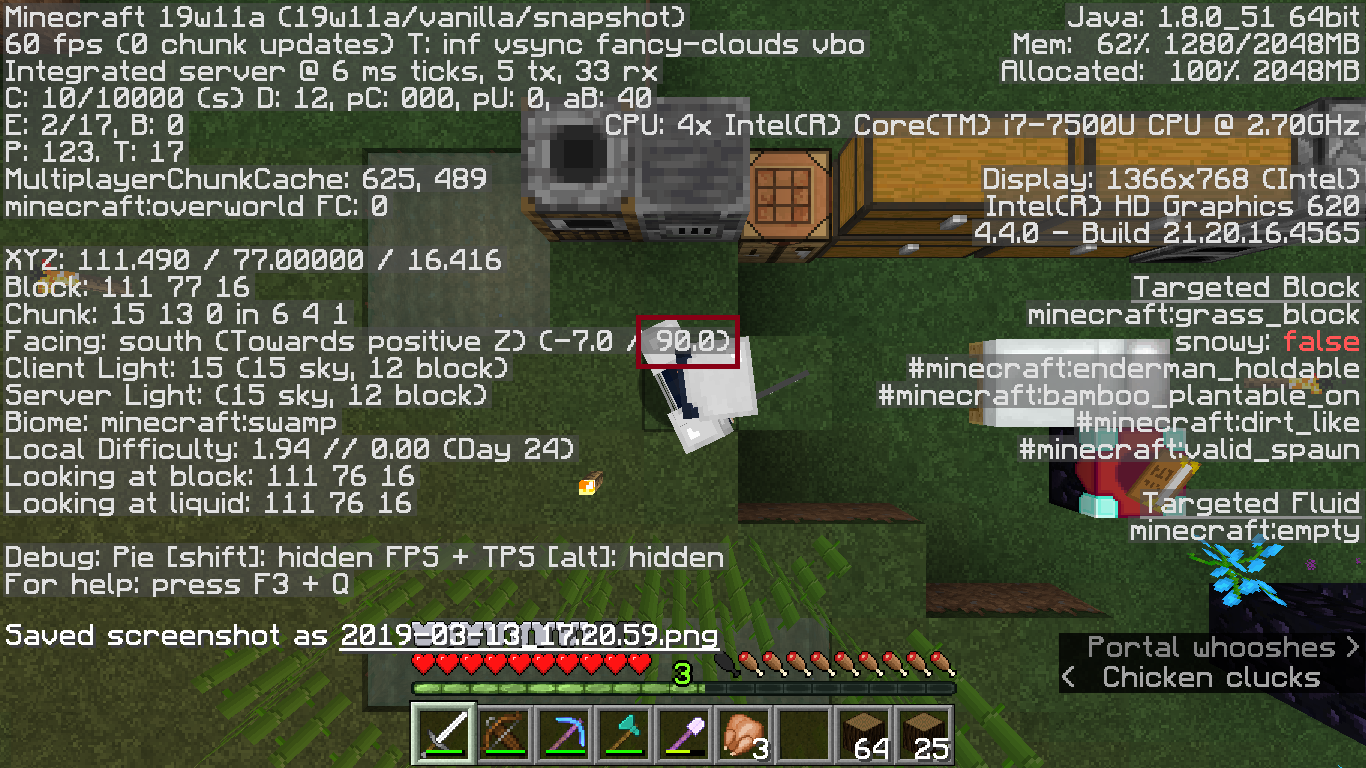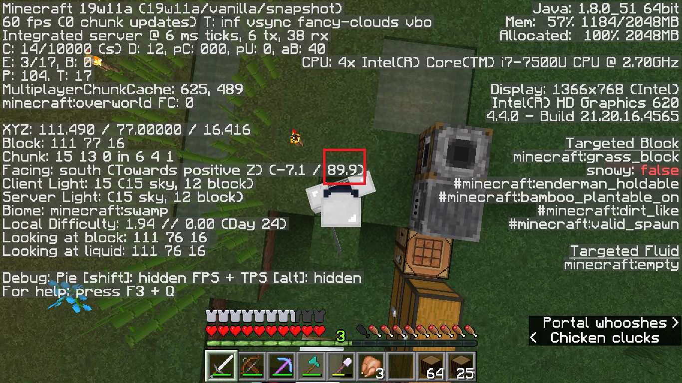 Look at yourself, pressing F5 whilst facing up or down, and the camera freezes. The player model head also seems to respect the issue, and only rotates horizontally (screenshots below).