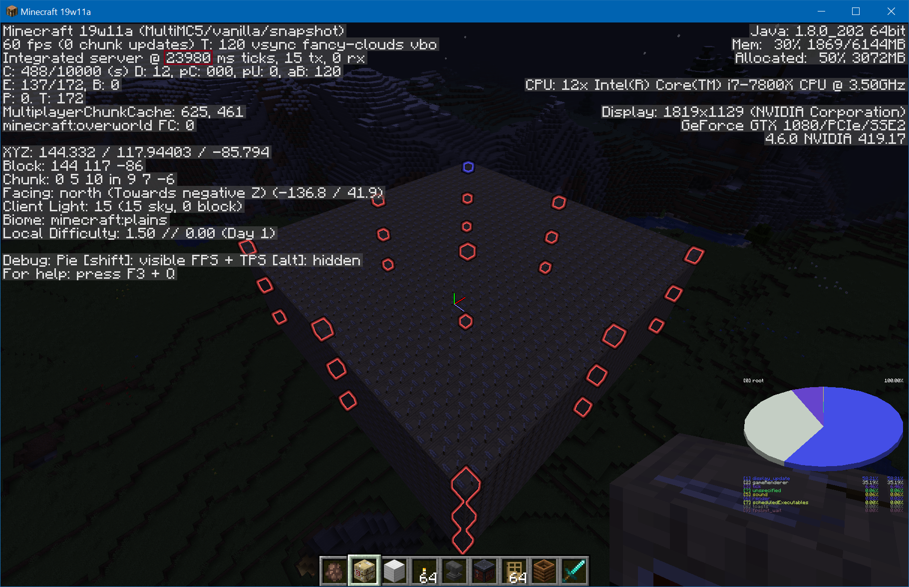 Having large amount of free work sites (e.g. 256+) can cause a second of lag, However increases with the more work sites there are where a couple of thousand can cause each tick to become 20 seconds each. Whilst this may not be feasible to achieve in survival mode, this could cause major issues on creative mode(or build) servers.