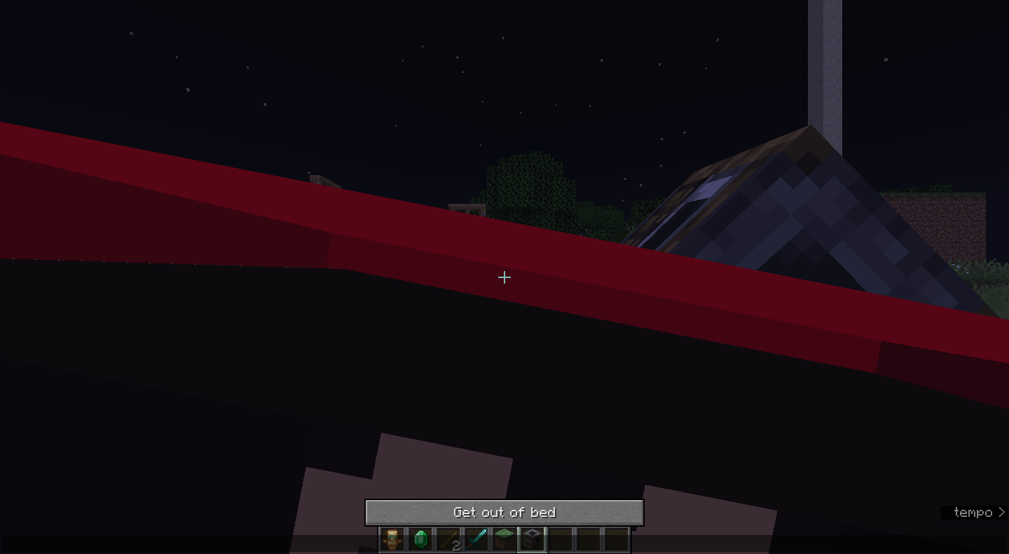 When you sleep in a bed that is on the same height as your head (standing one block beneath it), everything is normal, but if you sleep standing on the same height as the bed, on the bed or jumping while entering the bed, the camera glitches into the player model. But that also seems to be affected at which angle you click the bed at which height.